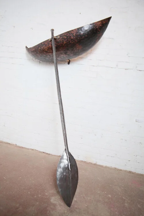 Golden Oars, 2014, forged, fabricated, patinated steel and gold, 50" x 16.5" x 6"